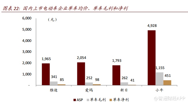 传统铅酸电池在性能方面差异性小,生产规模较小、自主创新能力低的电动自行车生产企 业,其产品类型主要以低档次、低附加值产品为主,产品同质化严重,销售毛利率水平偏 低。而即使参考上市公司情况,目前大品牌电动自行车的平均单价也在 2,000 元以下,毛 利率在 15%左右,净利率在 5%以下。我们已经能看到头部品牌锂电车型的供给越来越多, 平均售价在 3,500-4,000 元,相比铅酸车型有显著提升。同时,锂电采购成本较高,未来大 品牌的规模效应会更加凸显。