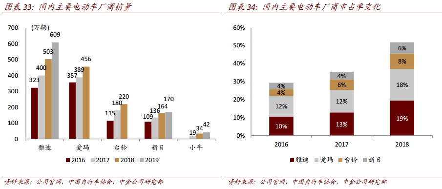 1)电动自行车/锂电龙头:雅迪控股、小牛电动;