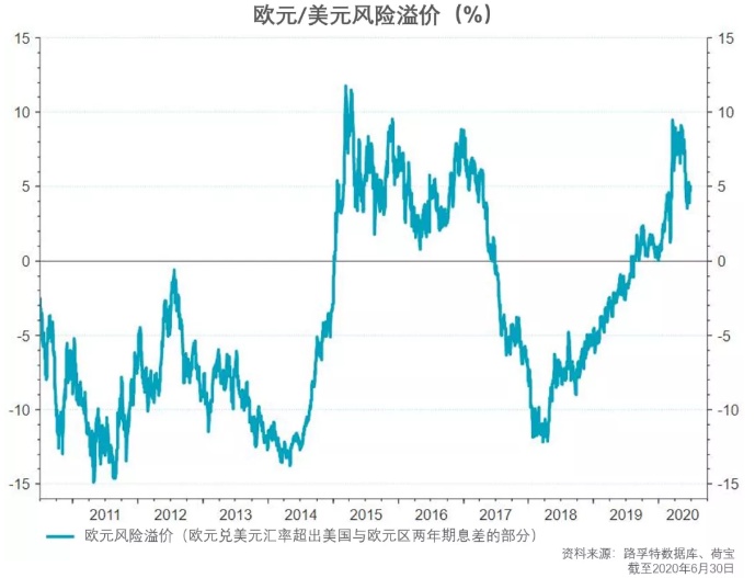 “我们认为,根据美国与欧元区两年期息差,欧元风险溢价在3月底超出基本面约10%,但仍需外部助力释放这一价值。随着‘复苏基金’的谈判取得进展,欧元风险溢价的另一重要拐点或将来临。”