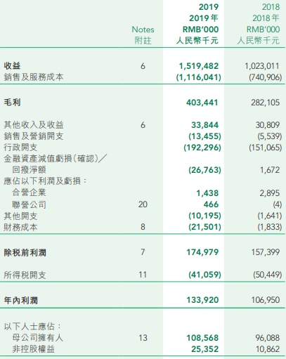 不过收购的标的公司主要是从事房地产经纪业务以及园林景观业务,相关利润率低于物业管理的利润率,公司2019年整体毛利率同比下滑1.0个百分点至26.6%。而且,公司收并购带来大量整合成本以及延期支付收并购款项导致利息增长,其中公司销售及营收开支、行政开支、财务成本分别同比增长142.9%、27.3%和1073%至1345.5万元、1.92亿元和2150.1万元,其它开支还同比增长了5.2倍至1019.5万元,在所得税还同比减少的情况下,公司净利润录得1.34亿元,25.2%的同比增速明显低于营收增速的48.5%,刨除少数权益后的归母净利润更是只有13%小幅增长至1.09亿元,归母净利率为7.1%,同比大幅下滑2.3个百分点。
