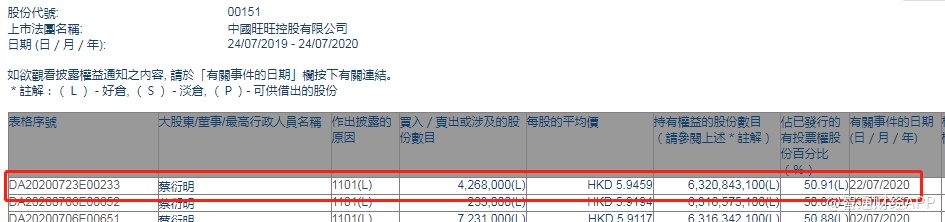 智通财经APP获悉,香港联交所最新资料显示,7月22日,蔡衍明增持中国旺旺(00151)426.8万股,每股作价5.9459港元,总金额约为2537.71万港元。增持后最新持股数目约为63.21亿股,最新持股比例为50.91%。