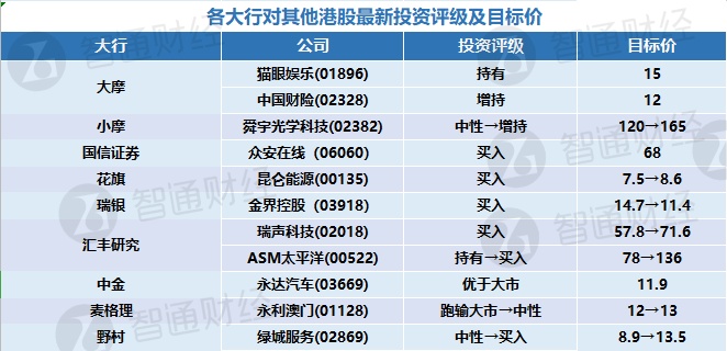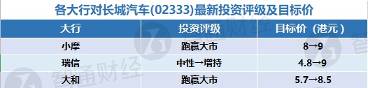 三、各大行对长城汽车(02333)最新投资评级及目标价