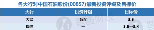 四、各大行对中国石油股份(00857)最新投资评级及目标价