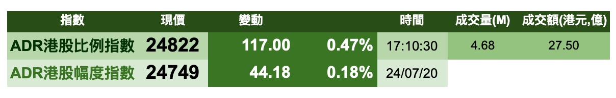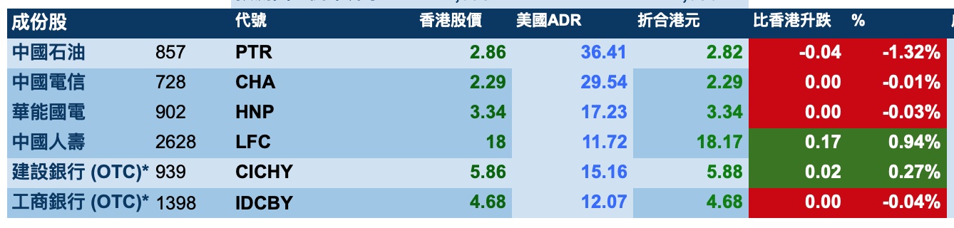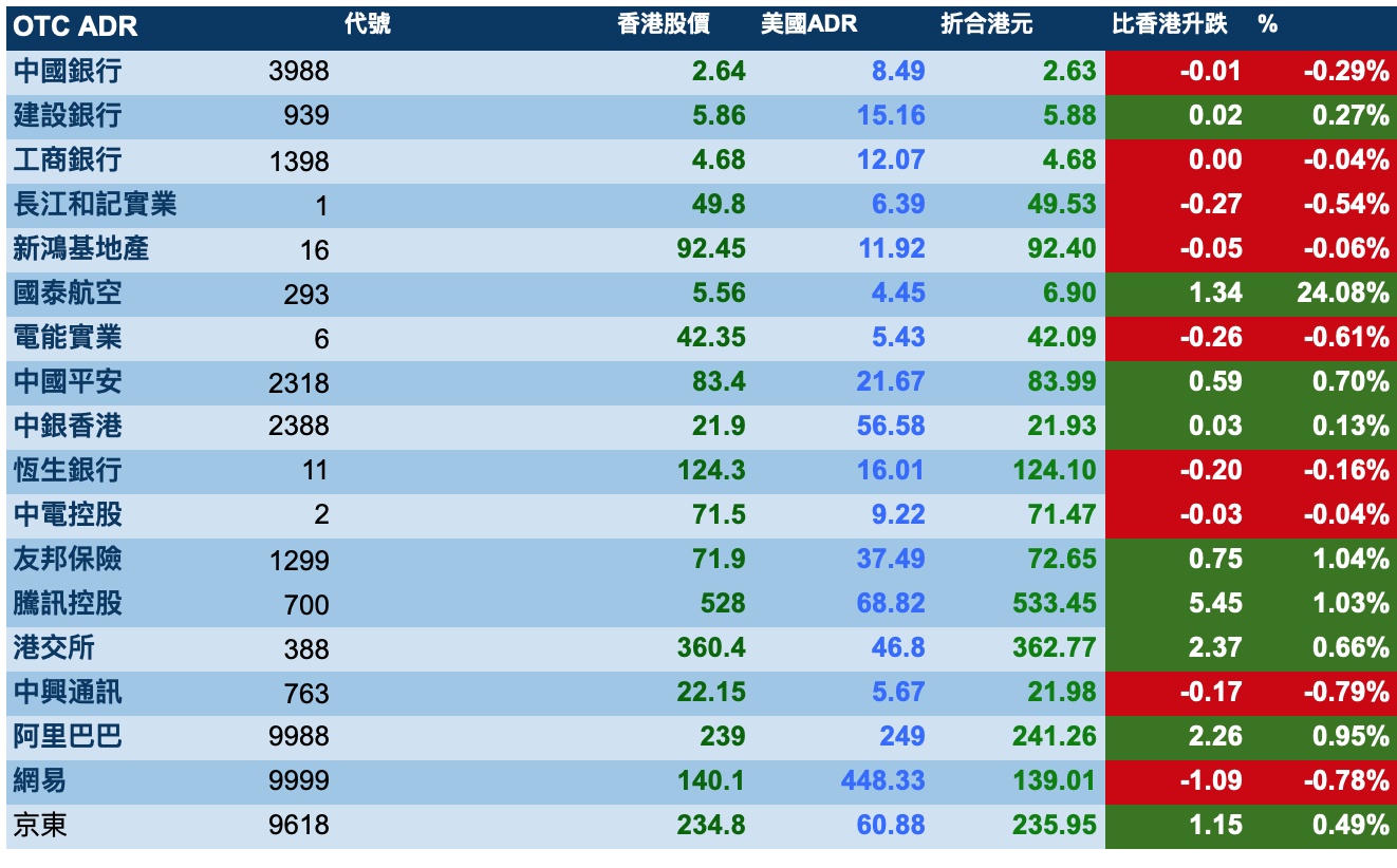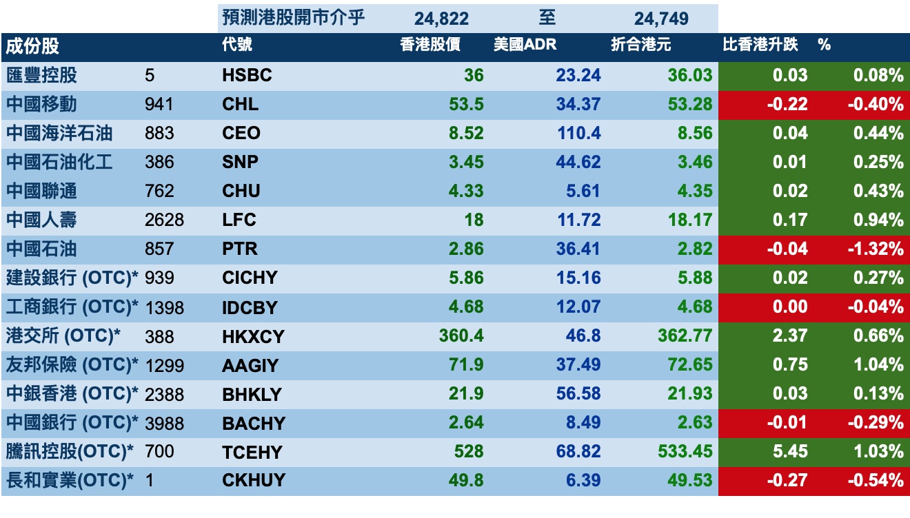 智通财经APP获悉,周五美股三大指数集体下跌,港股ADR指数全日上涨,按比例计算,收报24822点,涨117点或0.47%。
