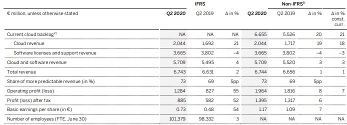 智通财经APP获悉,7月27日(周一)美股盘前,德国商业软件巨头SAP SE(SAP.US)公布截至2020年6月30日的2020年Q2业绩。