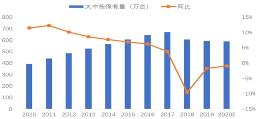 与此同时,保有量承压、更新周期来临、国标转换等问题,也在持续为农机行业提供上行动力。智通财经APP了解到,2018年我国大中轮拖保有量大约为606万台,同比减少约64万台,而近年来我国大中拖销量锐减,2018年和2019年每年销量不足30万台,同时拖拉机报废期限平均为10年,业内专业人士测算2020-2025年报废的大中拖数量合计将达318万台,年均报废53万台。