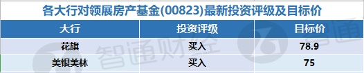 四、各大行对领展房产基金(00823)最新投资评级及目标价