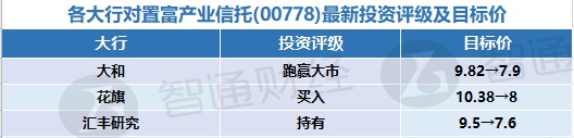 五、各大行对置富产业信托(007788)最新投资评级及目标价