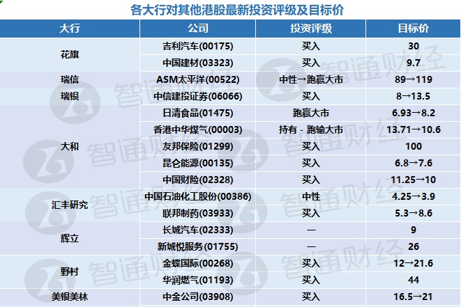 一、各大行对渣打集团(02888)最新投资评级及目标价