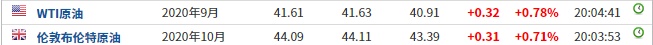 截至发稿,WTI原油涨0.78%,报41.61美元/桶。布伦特原油涨0.71%,报44.09美元/桶。