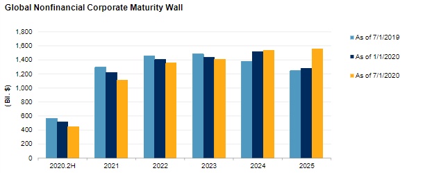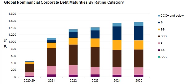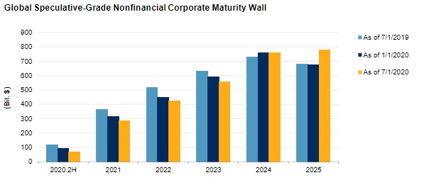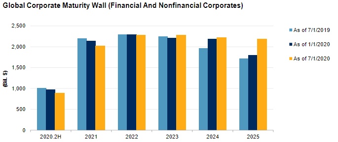 智通财经APP获悉,标普全球评级对全球11.86万亿美元将于2020年7月1日至2025年12月31日到期的公司债(包括债券、贷款和循环信贷工具)进行评级。年初至今,将于上述时间到期的债券总额同比增长了2.3%。在2020年上半年创纪录的债券发行之后,企业已经通过偿还、再融资或其他方式减少了约4%的原本将于2022年到期的债券。这有助于将到期期限从2022年(2.30万亿美元债券到期)推迟到2023年(2.28万亿美元债券到期)。