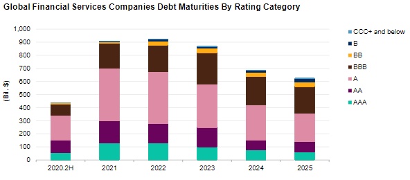 截至2025年到期的金融服务业债券中,有41%属于A类
