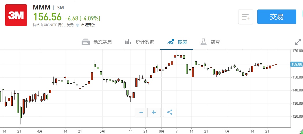智通财经APP获悉,7月28日(周二)美股盘初,截至21:35,3M(MMM.US)跌4.45%,报155.97美元。