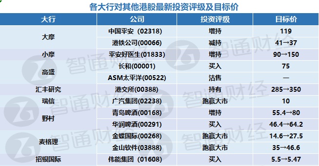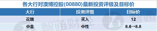 一、各大行对澳博控股(00880)最新投资评级及目标价