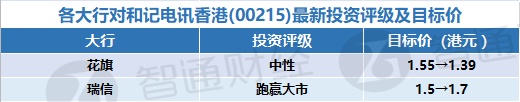 二、各大行对和记电讯香港(00215)最新投资评级及目标价