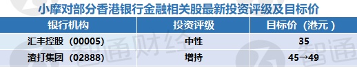 五、小摩对部分香港银行金融相关股最新投资评级及目标价