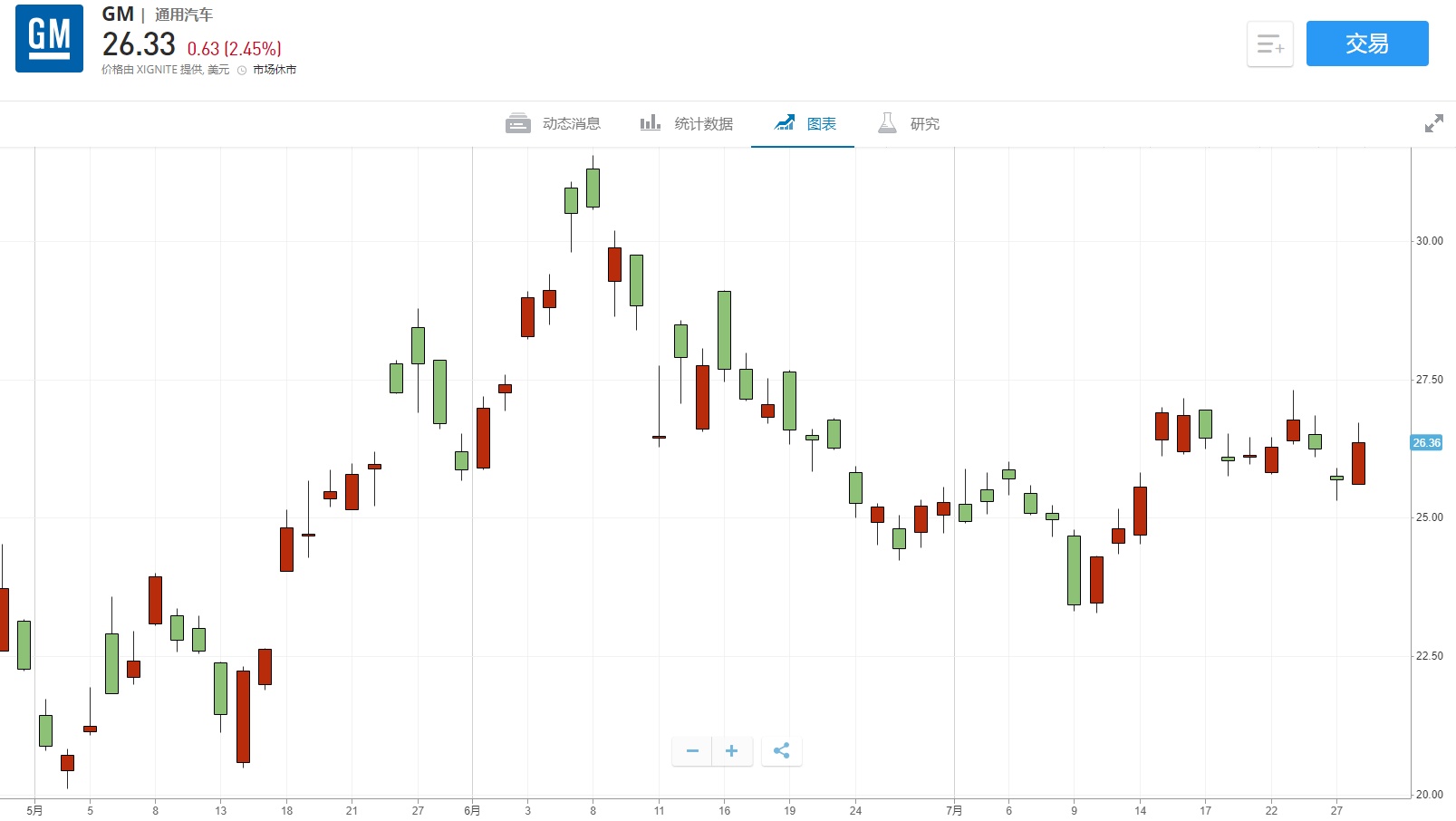 智通财经APP获悉,7月29日(周三)美股盘前,截至20:02,通用汽车(GM.US)涨3.87%,报27.36美元。
