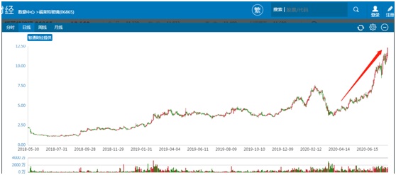 智通财经APP了解到,近期玻璃价格大幅上涨,从今年3月底至今,玻璃的价格就上涨了30%左右,达到了18元每平米,而玻璃期货上涨更是超过40%,7月22日创出了上市以来的新高,达到1745元每吨。个股方面,光伏玻璃大龙头福莱特玻璃3月31日起至今的累计涨幅接近2.3倍,7月29日创出12.38港元股价历史新高,较前一波历史高点高出了60%多;同为光伏玻璃龙头的信义光能3月底起的累计涨幅也有1.2倍,近期创出的8.88港元历史新高同样较前高点高出28%。而以浮法玻璃为主的信义玻璃行情于较晚的6月初正式开启,目前累计最大涨幅也接近了47%。