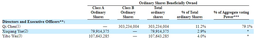 蘑菇街联合创始人,董事长兼CEO陈琪持有该公司11.2%的股份,投票权为79.1%。