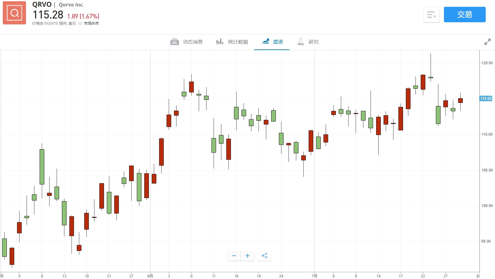 智通财经APP获悉,7月30日(周四)美股盘前,截至16:19,芯片供应商Qorvo(QRVO.US)涨7.35%,报123.75美元。