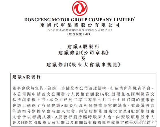 智通财经APP观察到,根据公告,7月27日,东风集团在董事会会议上通过了有关建议A股发行及相关授权事宜的议案,并决议将该等议案分别提呈临时股东大会、内资股类别股东大会及H股类别股东大会予以审议批准。不过A股发行须待临时股东大会、内资股类别股东大会及H股类别股东大会批准以及相关监管机构批准或决定后,方可作实。