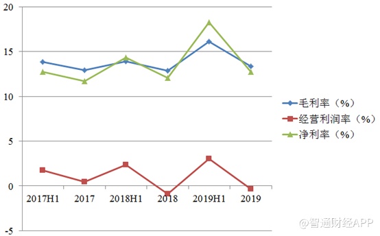 数据显示,从2018H1开始,东风集团营收增速开始放缓,2018全年营收同比下降16.4%,2019H1及2019年营收同比分别下滑16.4%及3.4%。在营收承压的情况下,其销售成本并未同步下降,导致2018年和2019年经营溢利分别亏损9.58亿元和3.66亿元。