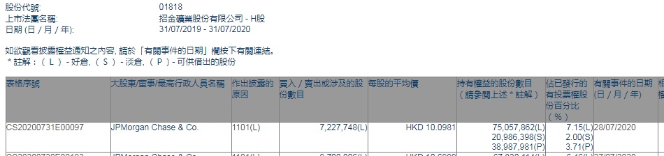 智通财经APP获悉,香港联交所最新资料显示,7月28日,小摩增持招金矿业(01818)722.7748万股,每股作价10.0981港元,总金额约为7298.65万港元。增持后最新持股数目约为7505.79万股,最新持股比例为7.15%。