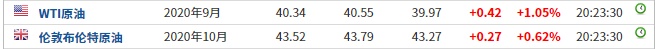 截至发稿,WTI原油涨1.05%,报40.34美元/桶。布伦特原油涨0.62%,报43.52美元/桶。