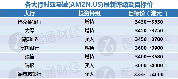 瑞穗证券:将亚马逊目标价从3450美元上调至3700美元,维持“买入”评级