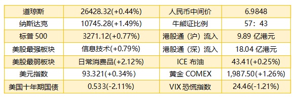 1、上周五,FAAG公布业绩,普遍表现胜预期,苹果(AAPL.US)、Facebook(FB.US)及亚马逊(AMZN.US)股价早于盘后已急涨,美股期货于亚洲时段上升,带动纳指期货曾升1%。美股开市后,纳指一如预期强劲,一度涨1.5%,不过,道指则走势反覆,最多曾挫300点,尾盘持续走高。截至收盘,道指涨114.67点或0.44%,报26428.32点;纳指涨157.46点或1.49%,报10745.27点;标普500指数涨24.90点或0.77%,报3271.12点。港股ADR指数全日偏软,按比例计算,收报24,474点,跌121点或0.5%。