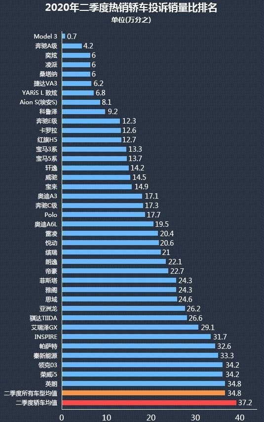 智通财经APP获悉,根据第三方机构的数据显示,特斯拉(TSLA.US)旗下Model 3或许是中国2020年第二季度获得最少投诉的热销汽车。数据显示,Model 3二季度每万辆汽车中只有0.7次投诉。