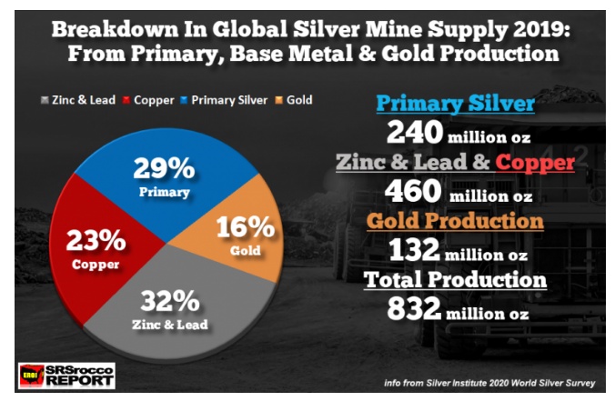 不过,这只是全球白银产量大幅减少的第一阶段。随着美国乃至全球经济在2020年下半年开始转差,基础金属的需求将减少。伴随着大量失业人口,全球经济衰退将导致铜、锌和铅需求的大幅下降。因此,在白银大幅减产的第二阶段,是因为市场对基础金属的需求将出现下降,导致铜、锌和铅产量的减少,而由于全球55%的银矿供应是基础金属开采的副产品,任何铜、锌和铅产量的减少都将对白银市场产生负面影响。