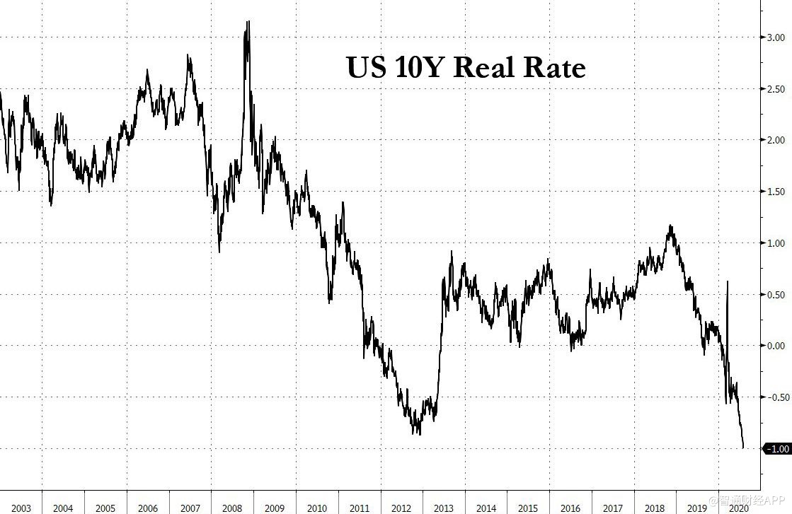 目前的情况与房地产泡沫时期越来越相似。不仅股票处于历史高位,还加上创纪录的低收益率和创历史新高的金价,因为10Y实际收益率刚刚跌至史无前例的负1%的历史低位,散户投资群体中的兴奋情绪也很高涨。