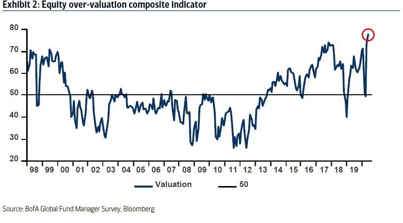 但在过去的一年里,“空头支票”公司也出现了爆炸式增长。智通财经APP了解到,这些公司是没有任何业务但计划上市的空壳公司,打算利用SPAC(特殊目的收购公司)首次公开发行的收益来收购或合并一家公司。对SPAC的投资通常会在市场高峰附近激增,此时专业投资界普遍认为股票估值过高。提醒大家注意的是,美国银行6月基金经理调查发现,78%的华尔街专业人士都认为当前股票估值过高。