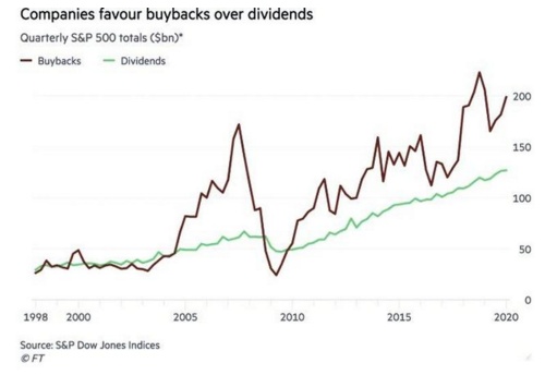 那些扩大回购计划的公司——大多是科技类公司——在经济低迷时期,大部分企业减少或暂停回购的情况下,总是“与市场背道而驰”。据相关数据表示,标普500指数成份股公司第二季度每股收益可能下降约39%,如果没有回购,这个数字可能会更大。