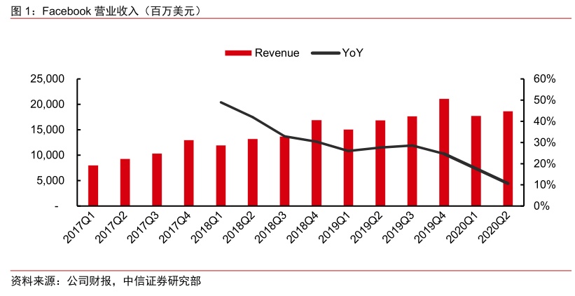 事项:全球在线社交巨头Facebook于近日公布了2020Q2季度财务报告,当季主要财务、在线用户数据好于市场预期。对此我们点评如下: