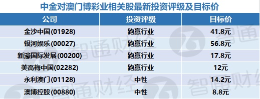 一、中金对澳门博彩业相关股最新投资评级及目标价(表)