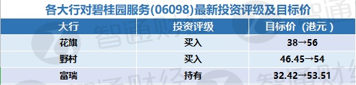 五、各大行对碧桂园服务(06098)的最新评级及目标价
