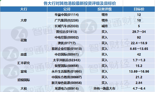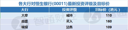 六、各大行对恒生银行(00011)的最新评级及目标价