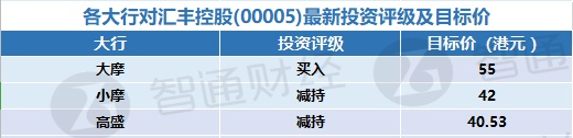 七、各大行对汇丰控股(00005)的最新评级及目标价