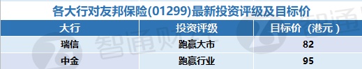 八、各大行对友邦保险(01299)的最新评级及目标价