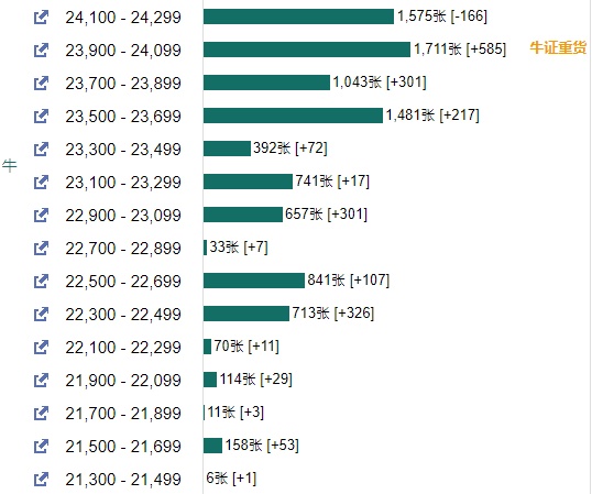 智通财经APP获悉,截至8月3日,恒指最新的牛熊街货比例60:40。摩根恒指牛熊证街货分布图中的数据显示,熊证街货重货区在25300-25499区间,该区间最新熊证数量为1072张,较上一交易日减少84张,最多新增24700-24899区间,该区间最新熊证数量为337张,较上一交易日增加337张。牛证街货重货区在23900-24099区间,该区间最新牛证数量为1711张,较上一交易日增加585张,最多新增区间也在该区间。