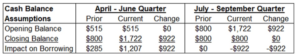 回过头来看,现金余额的激增幅度实在是太大了:事实上,这一数字是5月4日财政部预期的两倍多。尽管财政部此前预计,截至6月30日的当季,可流通借款将增加3万亿美元,但同时预计现金余额将在当天增至8000亿美元(如下表黄色部分所示)。