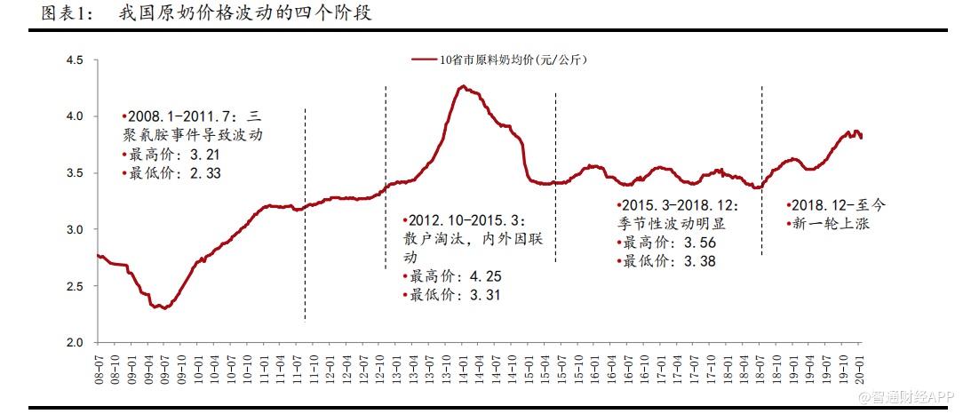 据智通财经APP观察,2013年,国内原奶收购价格进入快速上涨阶段,由于当时国内出现口蹄疫,同时叠加国际原奶主产区新西兰遭遇大旱等诸多因素推动,导致乳制品行业一度出现“奶荒”的事件。彼时,国内奶牛养殖企业为了抢占市场,开始大肆扩群。