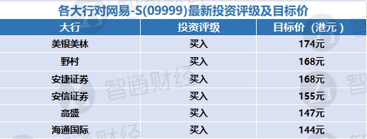 一、各大行对网易-S(09999)最新投资评级及目标价