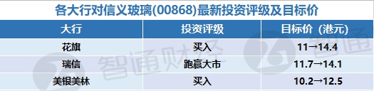 三、各大行对信义玻璃(00868)最新投资评级以及目标价