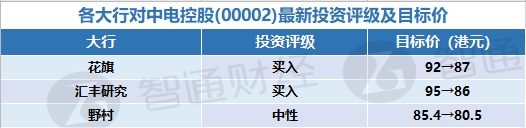 五、各大行对中电控股(00002)最新投资评级以及目标价