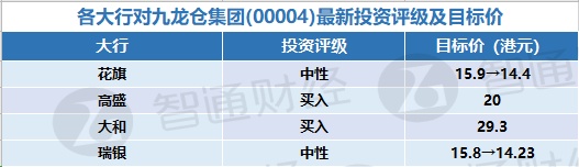 六、各大行对九龙仓集团(00004)最新投资评级以及目标价