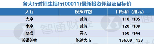 七、各大行对恒生银行(00011)最新投资评级以及目标价