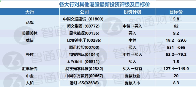八、各大行对其他港股最新投资评级及目标价